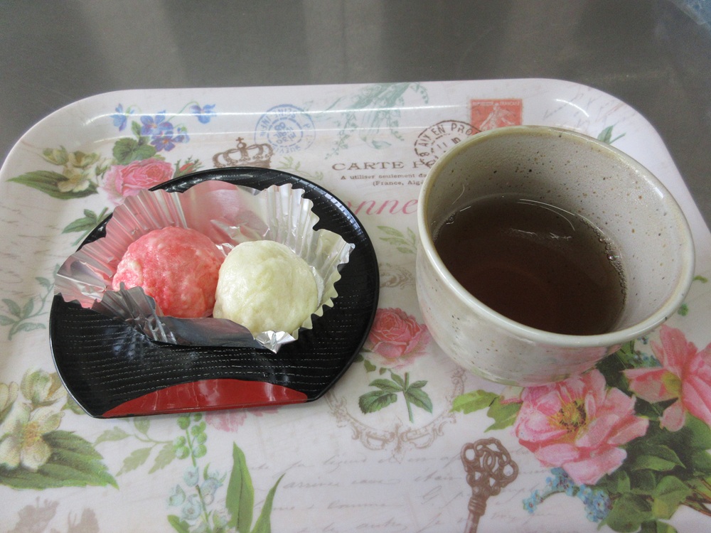 敬老の日のお祝いのお膳と手作りの紅白饅頭を召し上がって頂きました。
