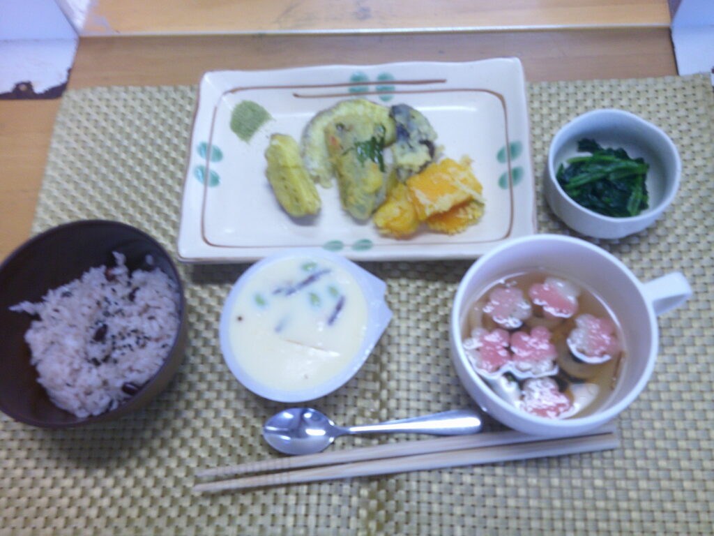 ・天ぷら・ほうれん草のおひたし・茶碗蒸し・赤飯・お吸い物