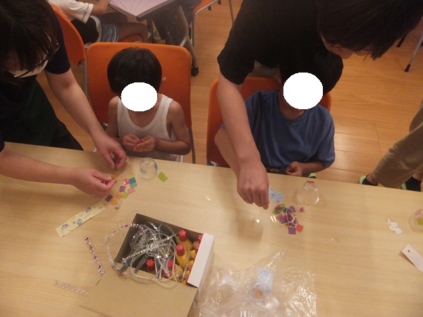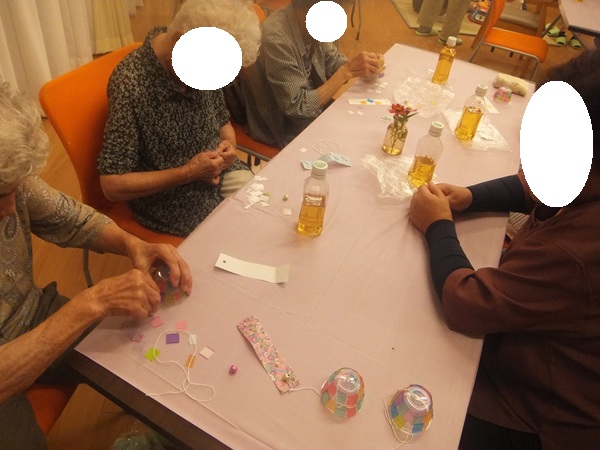 お腹いっぱいになった後は、みなさんで風鈴づくりをしました♪