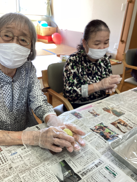 秋といえば食欲の秋!!おれんじでは秋の味覚を使った手作りおやつを行いました😊