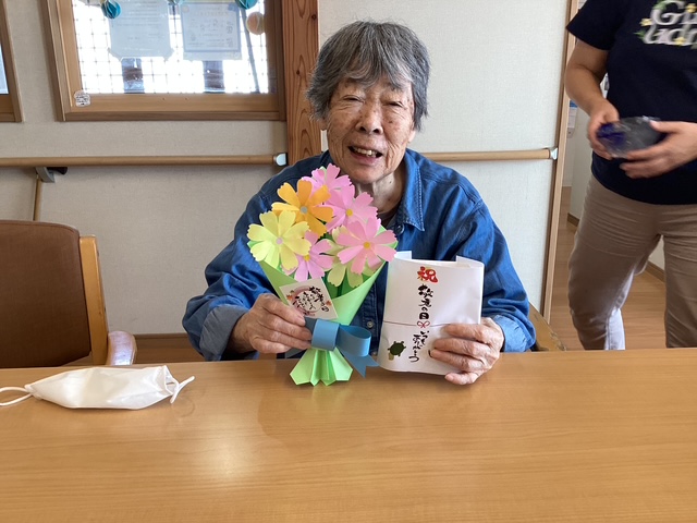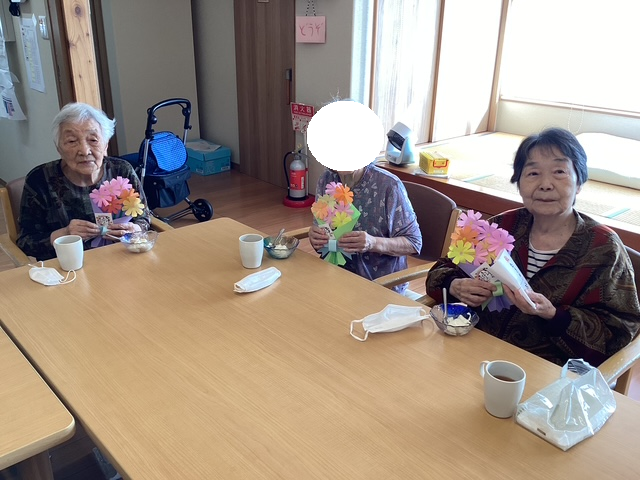 手作り花束💐と紅白饅頭を感謝をこめて、プレゼントしました!