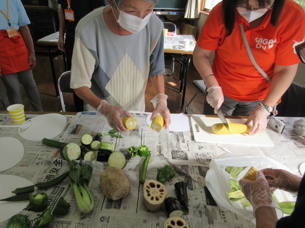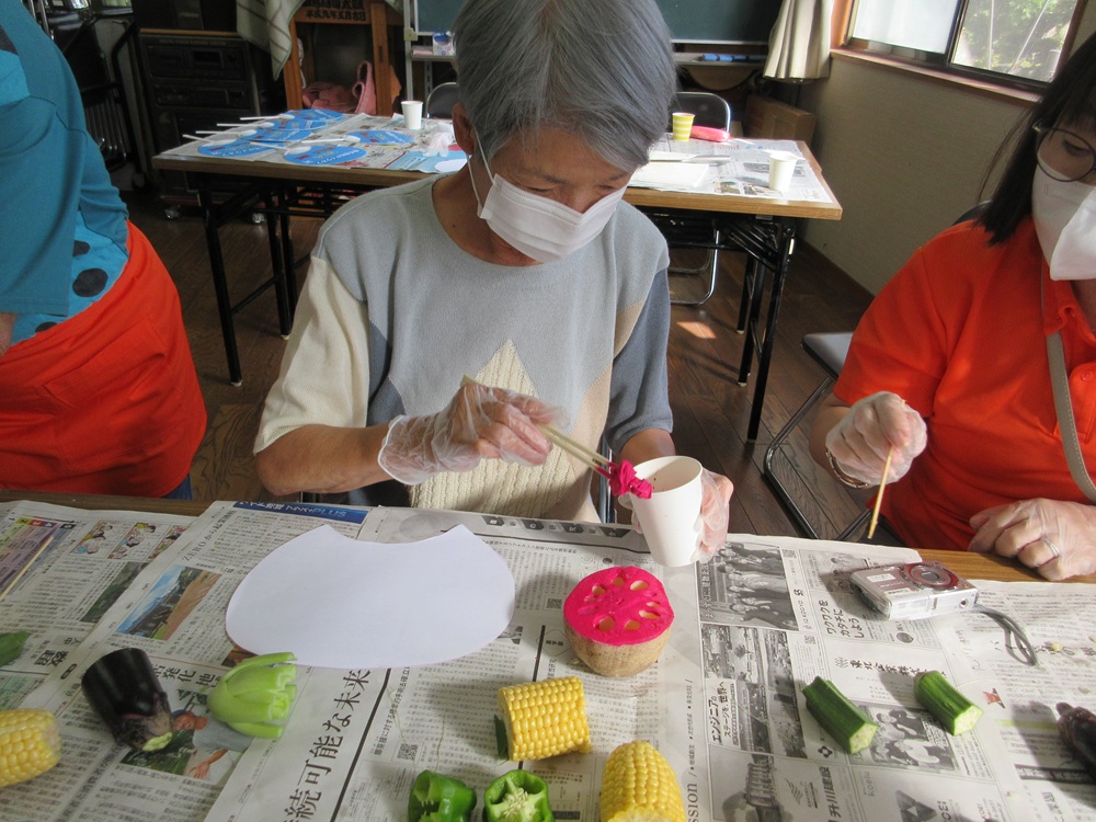 とこしえ島で取れた🥬野菜を中心に、色んな野菜をスタンプにして可愛く模様を付けてみました。