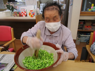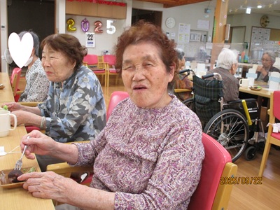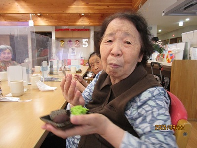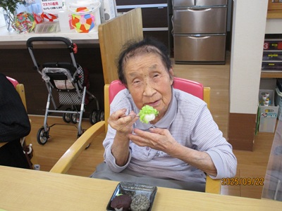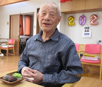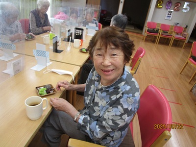 朝の茶話会にて「ないだべ、お彼岸が-!」