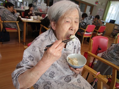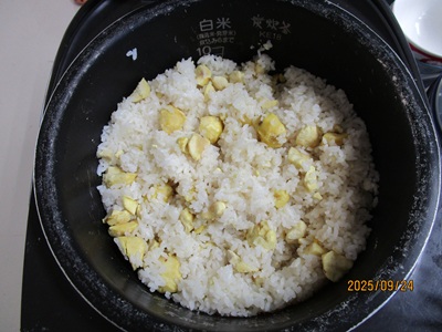 本日は職員が採ってきた栗を栗ご飯にしてお出ししました💛