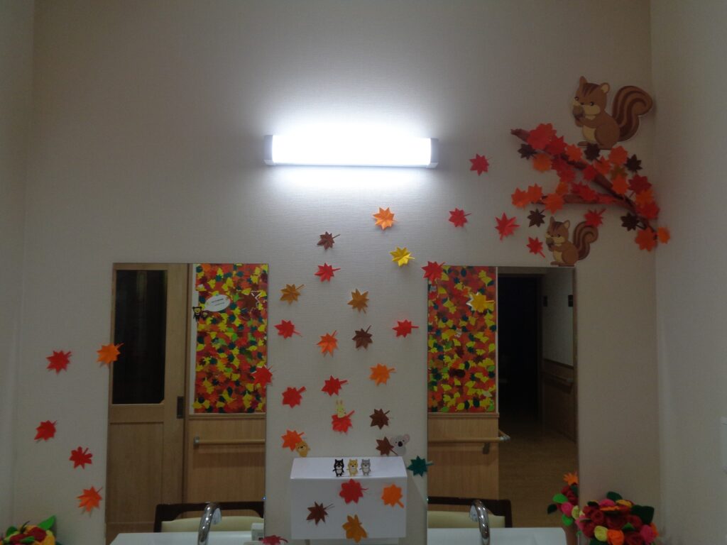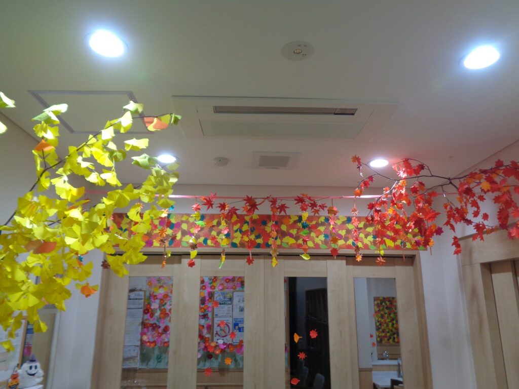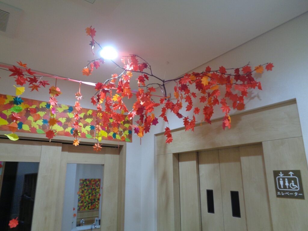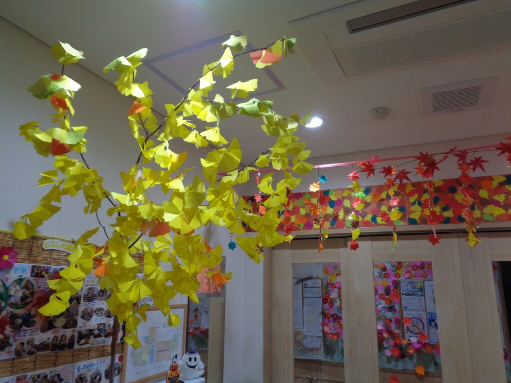 完成した紅葉は玄関に飾らせていただきました!紅葉の他にも銀杏の木も作ってたんですよ~