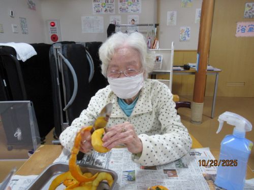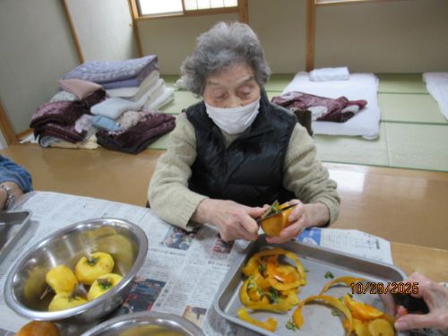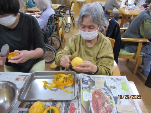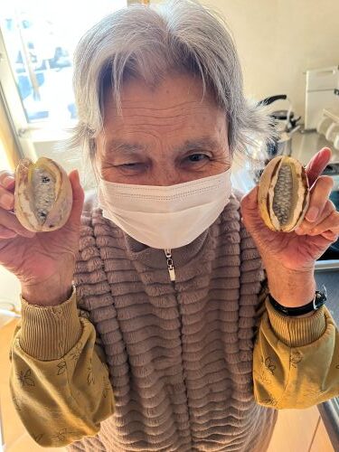 別の日にはお客様と職員が一緒にあけび料理をつくりをしました💗