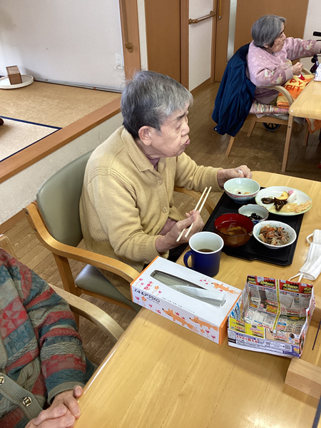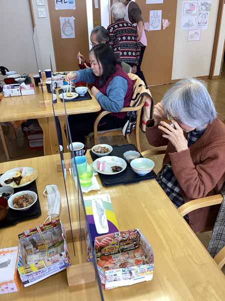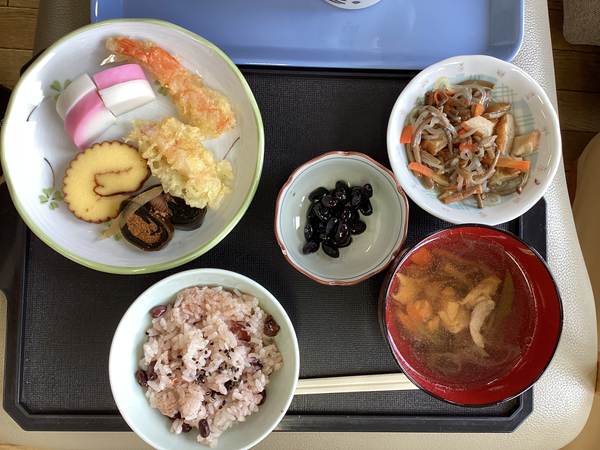 新年会では皆様に特別昼食メニューとしておせち盛り合わせやお赤飯などを食べて頂きました😍