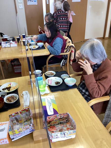 新年会では皆様に特別昼食メニューとしておせち盛り合わせやお赤飯などを食べて頂きました😍