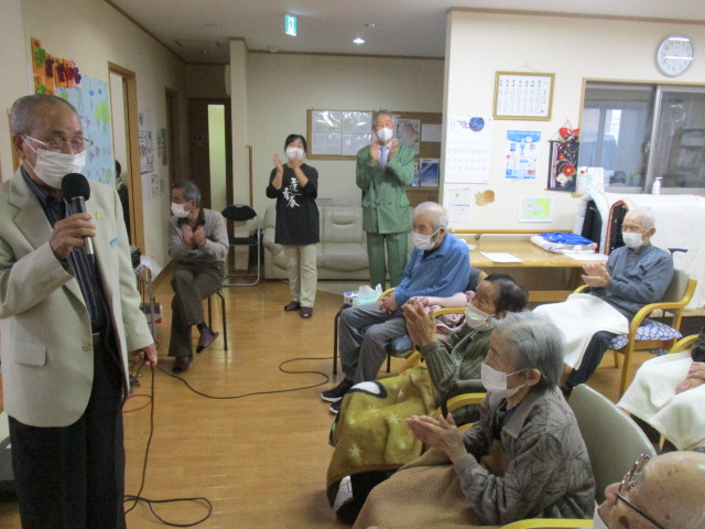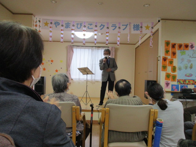 やまびこクラブの皆様ととこしえのお客様、職員とみんなで「上を向いて歩こう」を歌いました。