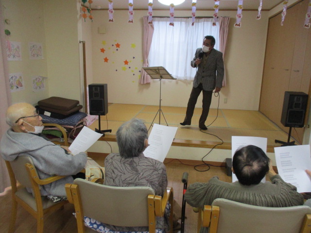 先日久しぶりにボランティアの方をお呼びして、歌謡曲を聞かせて頂きました。