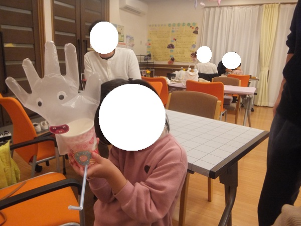 10月は、ハロウィン目前ということで、紙コップを使った「オバケ作り」を行いました。
