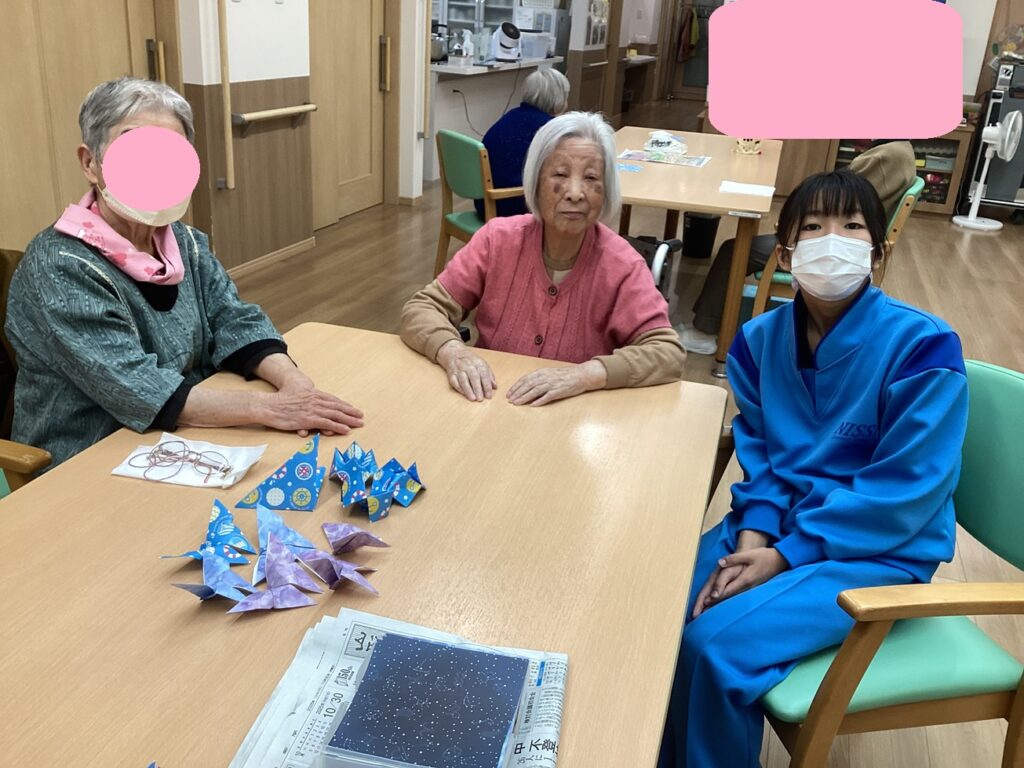 誕生会のあとは、学生さんと一緒に折り紙をして過ごされました✨