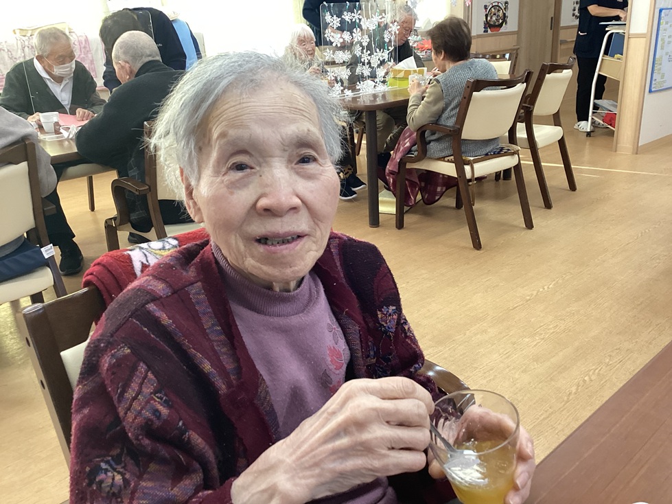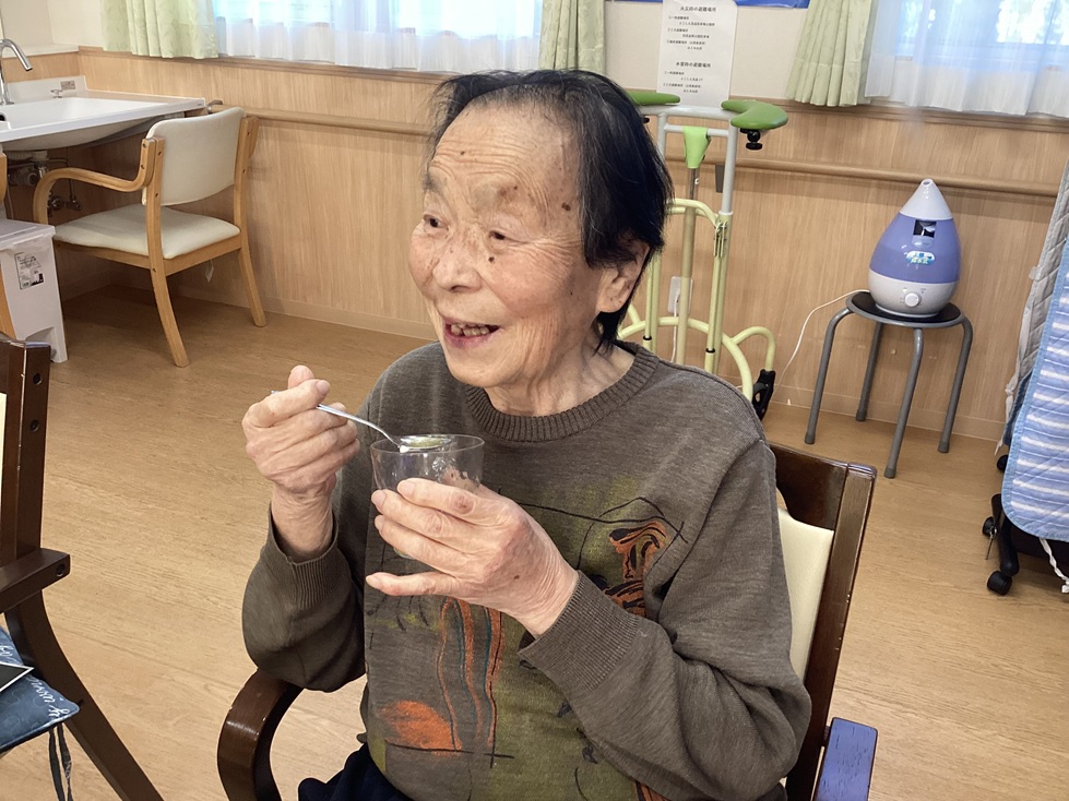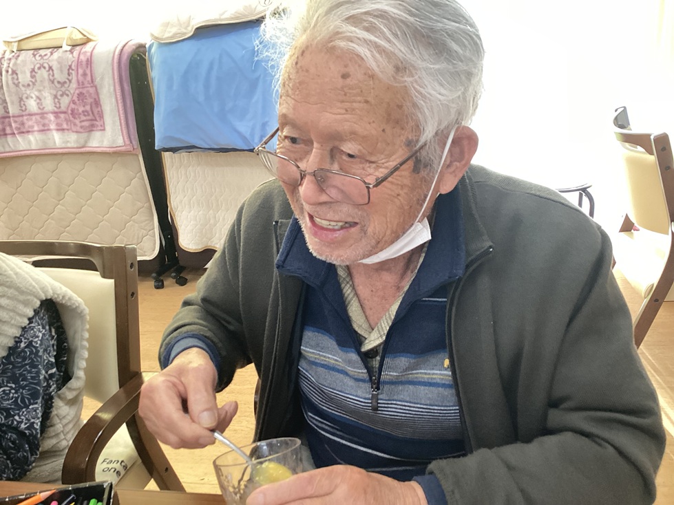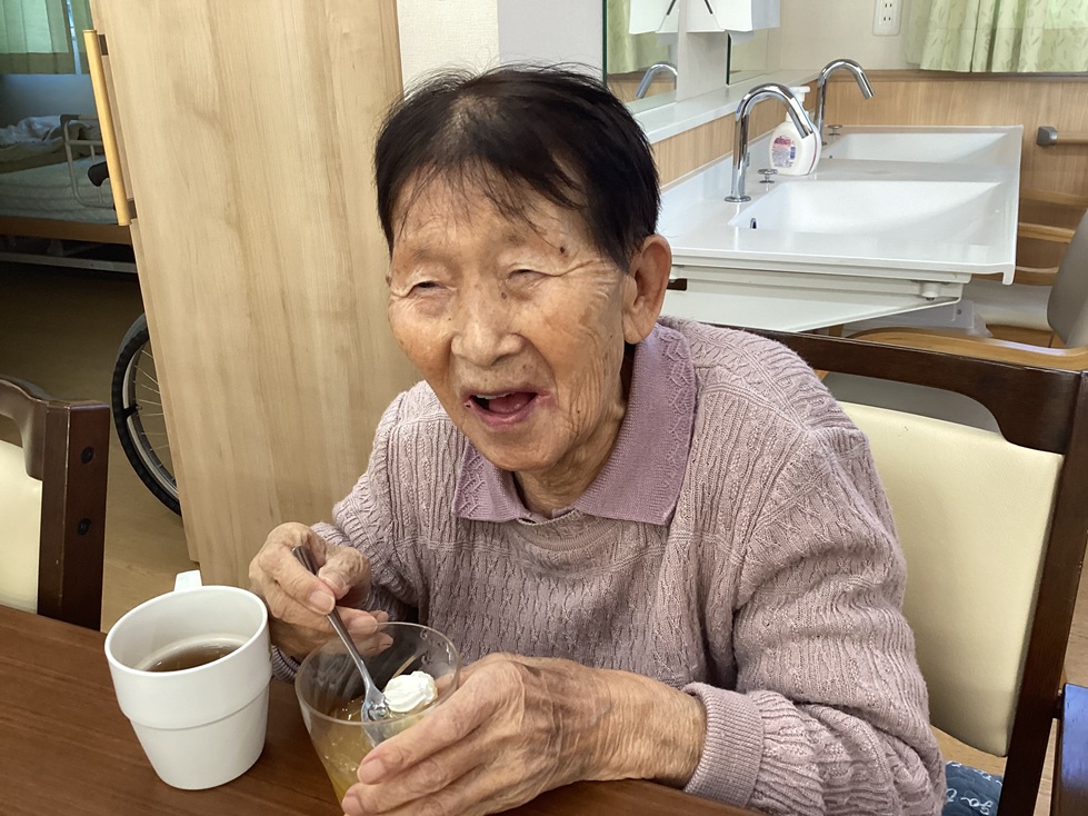 おやつに職員手作りのオレンジゼリーを召し上がられました🍊とても美味しそう🤭