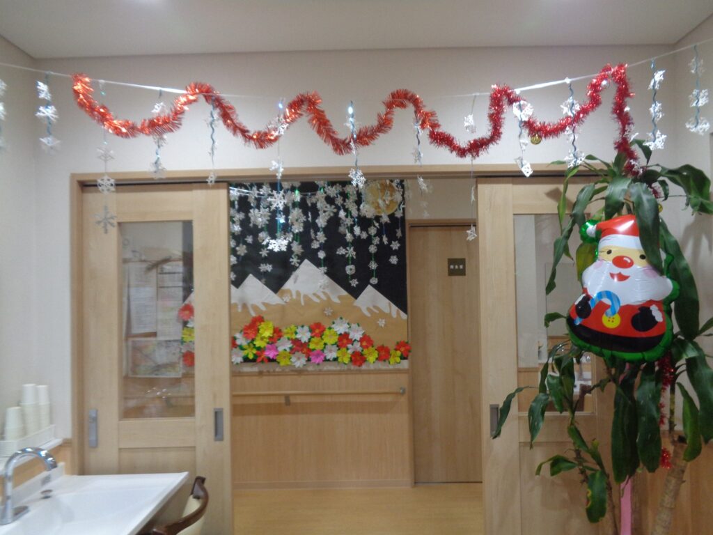 とこしえ高畠の玄関ではクリスマス装飾が始まり可愛いサンタクロースのお出迎えです🎅