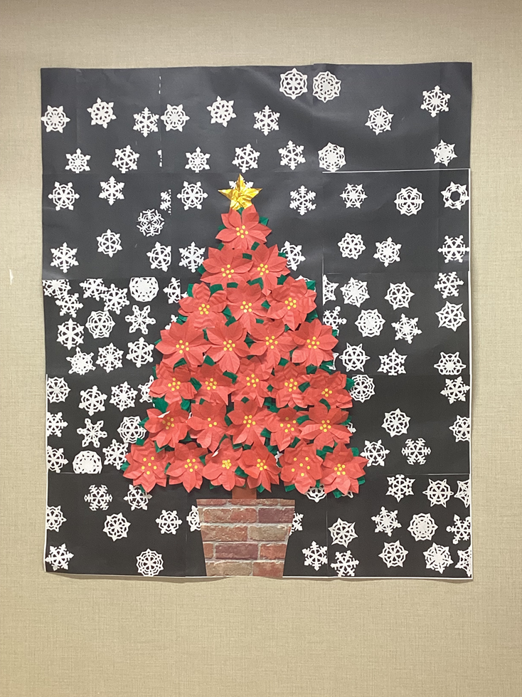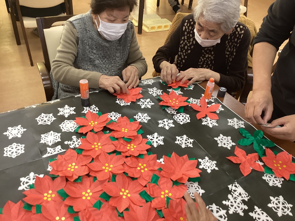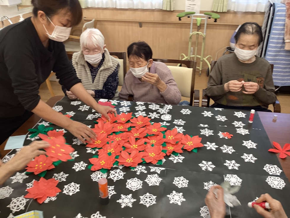 楽しみにしていて下さい😊とこしえ高畠では季節に合わせた装飾に力を入れており、玄関の飾り付けの他にもポインセチア作り、そしてクリスマスツリーの工作を行っております🎄