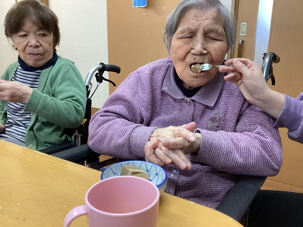 今回の誕生会のおやつは黒糖ムースを作ってみました~🤗