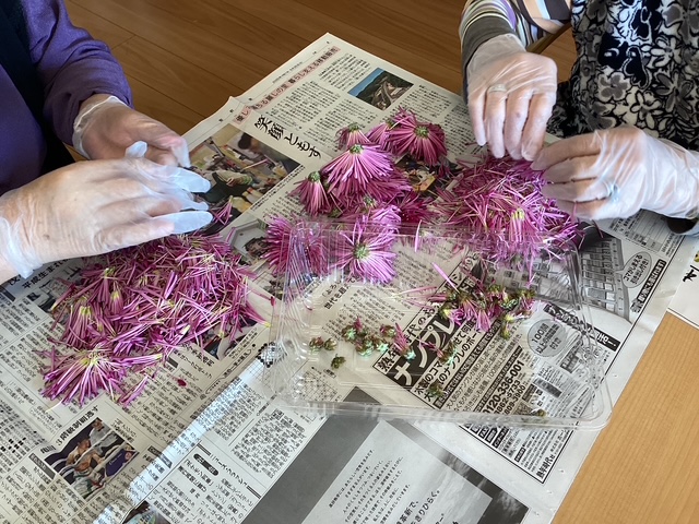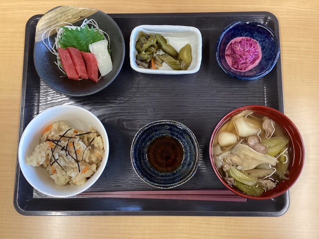 メニューは、 ☆芋煮 ☆きのこご飯 ☆刺身 ☆菊の酢の物 です🍚