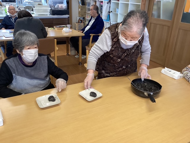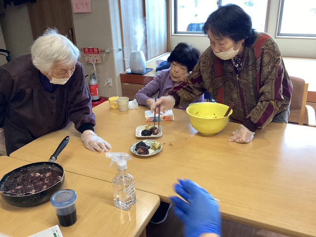 ぼたもちの味は、あんこ、きな粉、納豆、ゴマの4種類でした😊