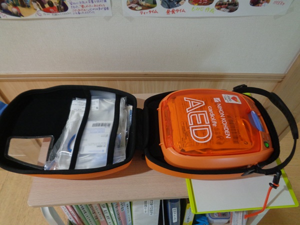 AED本体を開くと音声ガイドが流れ、ガイドに沿ってAEDを使用する形となっております。