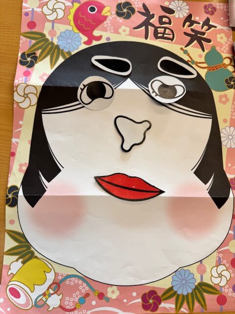 目隠しをしながら普通の表情を作るのがとても難しく、皆さんで大笑いながら色んな表情の福笑いを完成されてました😂