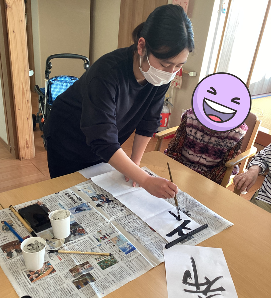 最初は「無理だ…」「書けない…」など言われてましたが筆を持つと「私、希望って書く!」「じゃあ私も書いてみようかな?」と気合十分で書き始めました😊