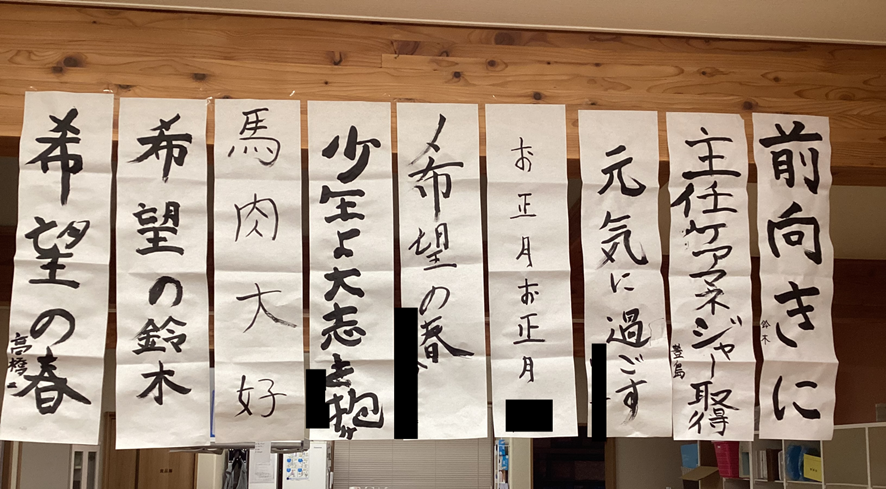 職員も一緒に今年の抱負などを書き初めしました😄