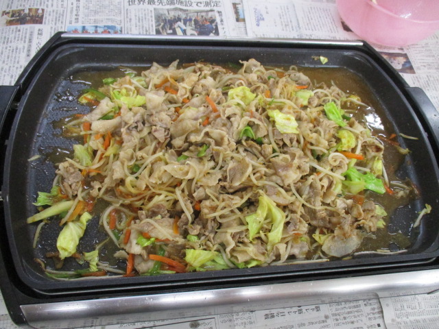 ホットプレートで野菜とお肉を炒め混ぜ混ぜ😋