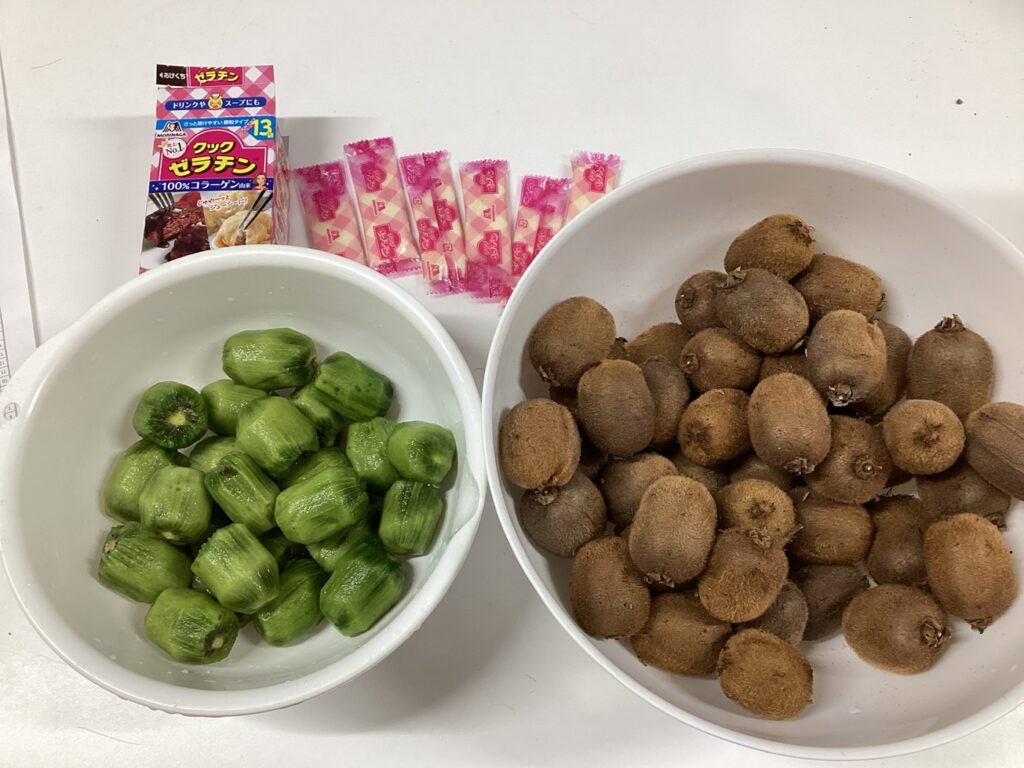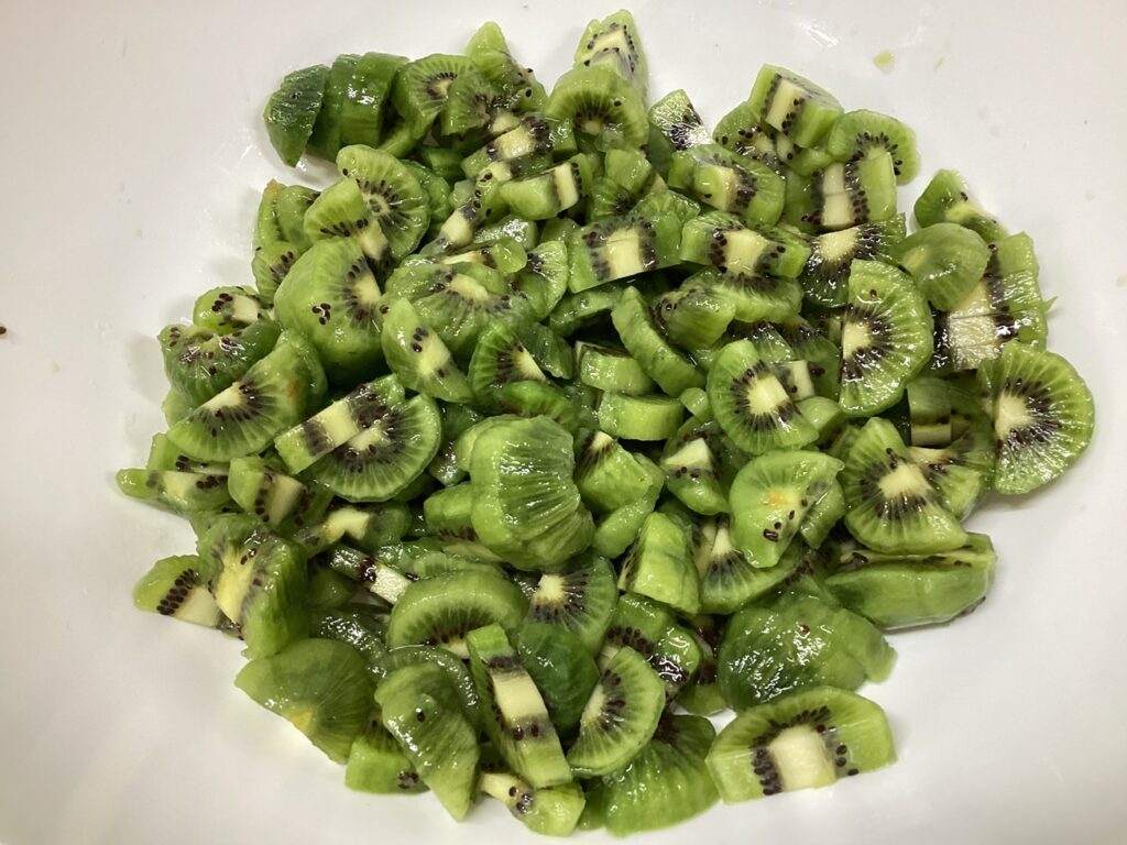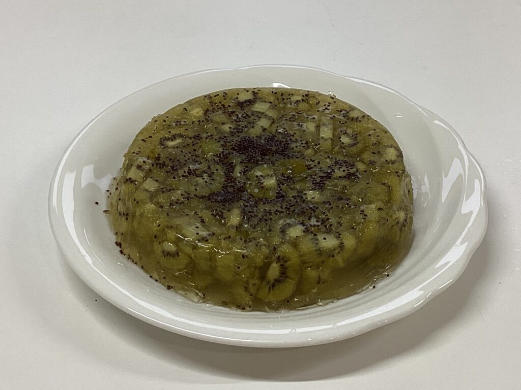午後のおやつには、ご近所の方に頂いた旬のキウイがたっぷり入った手作りキウイゼリーをいただきました!