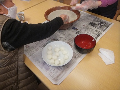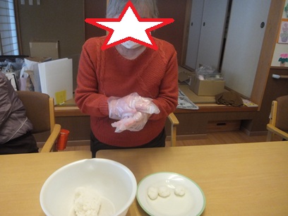 頑張って混ぜて頂いたもち米を、今度は一口サイズ程ちぎり、丸めていきます♪