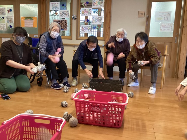 投げ入れる前から皆さんやる気満々で手から落ちるぐらいの玉を抱えて参加されてます🤭