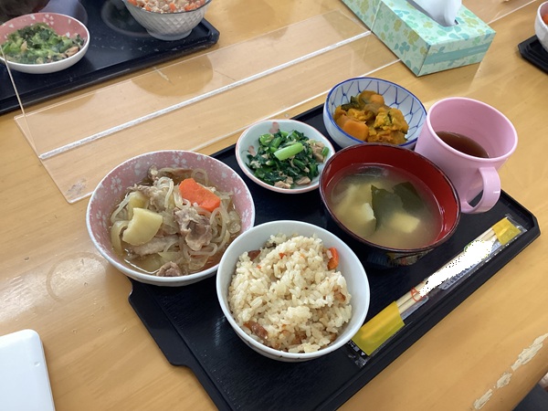 ・炊き込みご飯 ・肉じゃが ・ツナの和え物 ・カボチャ煮 です。
