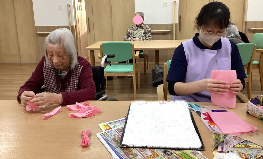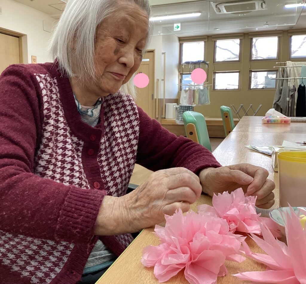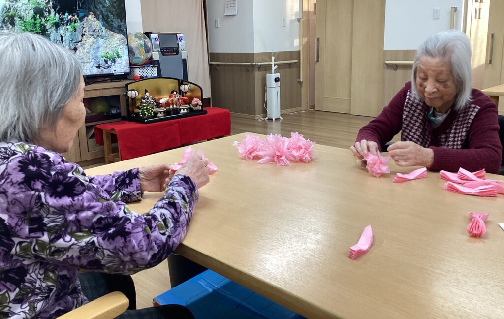 とこしえ新庄金沢では先日、お花紙を使ってひな祭りの準備をしました✨