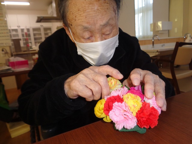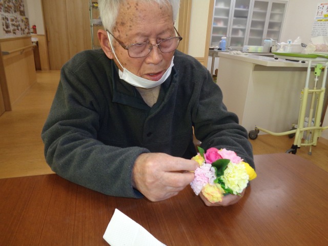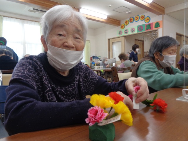 皆さんそれぞれ好きな色の花を活けてもらい作っていただきました!