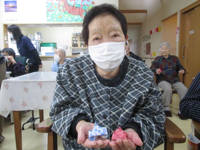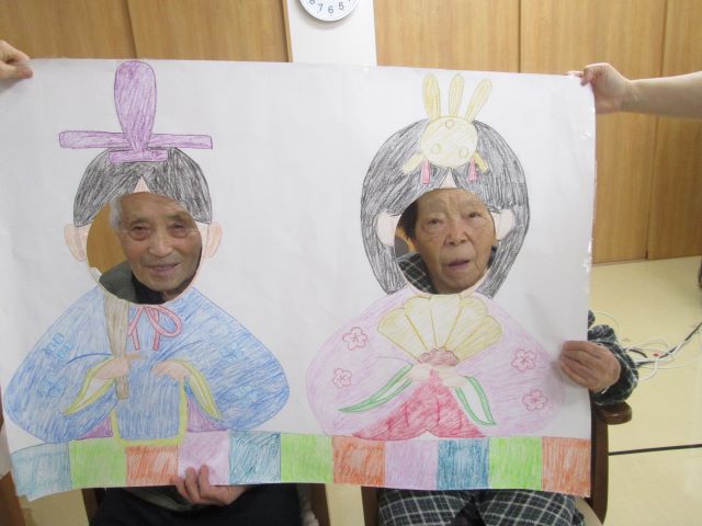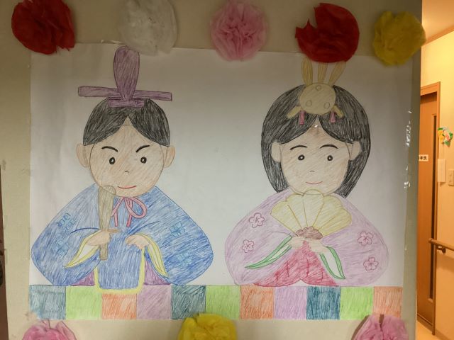 こちらは、職員が折り紙で制作した可愛らしい雛人形です🎶