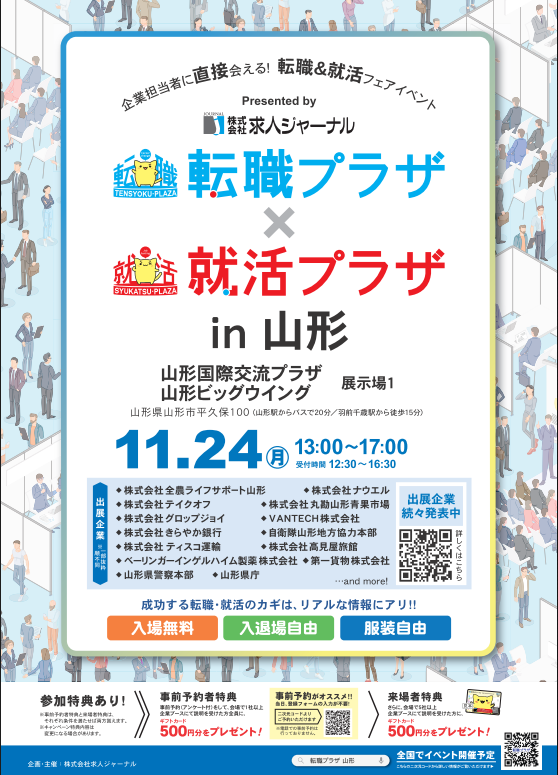 ホーム > お知らせ > 採用情報 > 転職プラザ×就活プラザ IN山形 に参加します